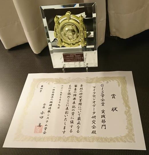 マイクロジオデータ研究会が「地理情報システム学会賞(実践部門)」を受賞しました