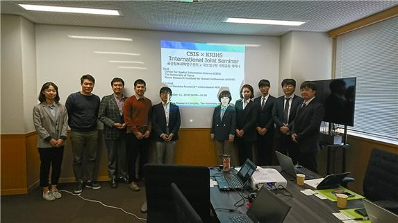 2018年11月15日(水)に東京大学空間情報科学研究センターと韓国国土研究院主催の国際共同セミナーを開催しました。本セミナーは第13回マイクロジオデータ研究会「第2回国際MGD研究会」としても開催され、日韓双方の最新の空間情報に関連する研究動向と課題の共有および議論を行いました。